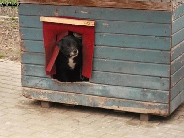 W schronisku kompletnie sobie nie radzi. Jest zastraszany przez inne psy i praktycznie nie wychodzi z budy.