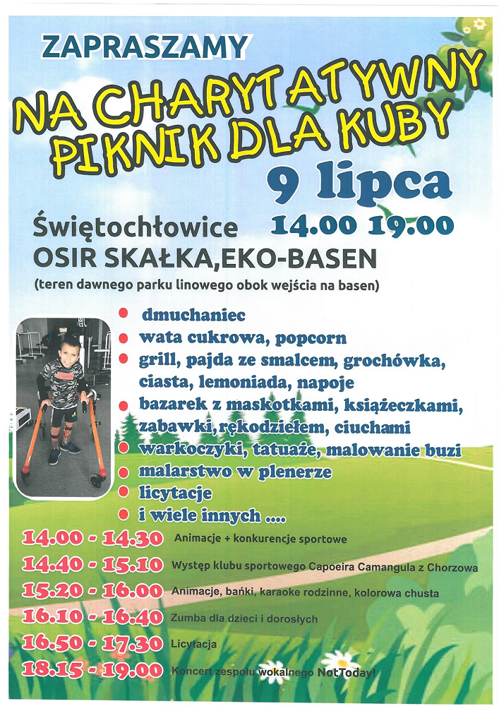 Celem pikniku jest zbiórka funduszy na rehabilitację dla Kuby, chłopca z Chorzowa cierpiącego na dziecięce porażenie mózgowe. Chłopiec po kosztownym zabiegu kręgosłupa musi uczęszczać na rehabilitację nawet 6 razy w tygodniu. wspólnie możemy pomóc mu w zebraniu środków na ten cel.