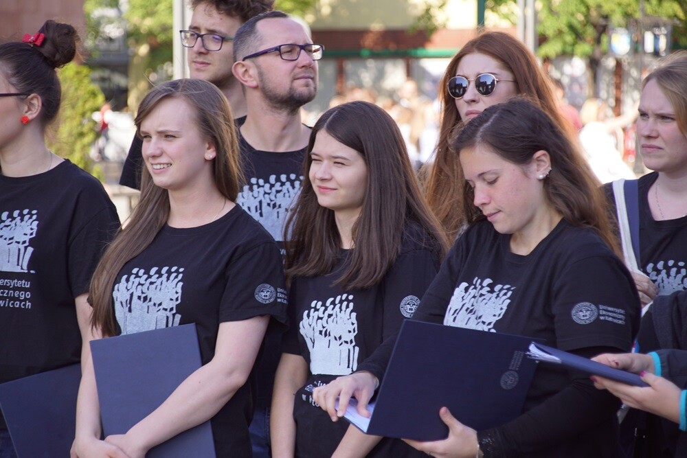 Dzisiaj odbyła się Noc Chórów! W siedmiu miejscach Nowego Bytomia swój repertuar zaprezentowało 11 zespołów. To w sumie 700 minut muzyki! Gościem specjalnym wydarzenia był chór Csikszerda z Budapesztu. To właśnie stamtąd zaczerpnięto ideę wydarzenia, czyli przedstawienie muzyki chóralnej szerszej widowni poprzez wyjście artystów na ulice miasta.