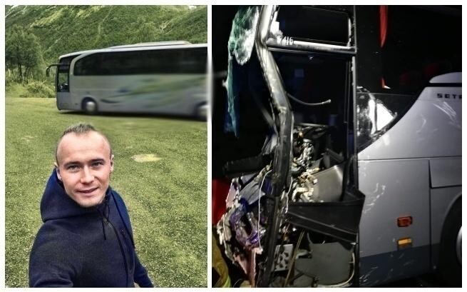 Autokarem jechało, razem z kierowcą, 49 osób. Siedem z nich zostało przewiezionych do szpitali. W najpoważniejszym stanie był właśnie kierowca, który po wypadku został uwięziony w kabinie. Uwolnili go z niej strażacy. Pan Mateusz został przetransportowany do szpitala śmigłowcem. W wyniku tego zderzenia śmierć poniosło 9 osób.