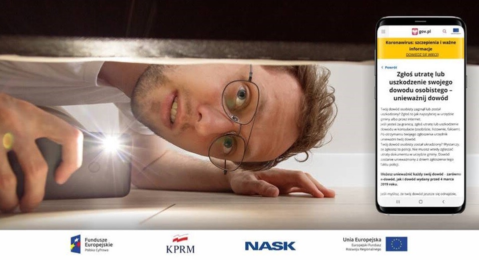 Jeśli Twój dowód zaginął lub uszkodził się po kilku latach wspólnego życia (wyrabialiście go przed 4 marca 2019 r., czyli przed wdrożeniem w Polsce e-dowodów), na portalu GOV.pl wybierz e-usługę Zgłoś utratę lub uszkodzenie swojego dowodu osobistego – unieważnij dowód.