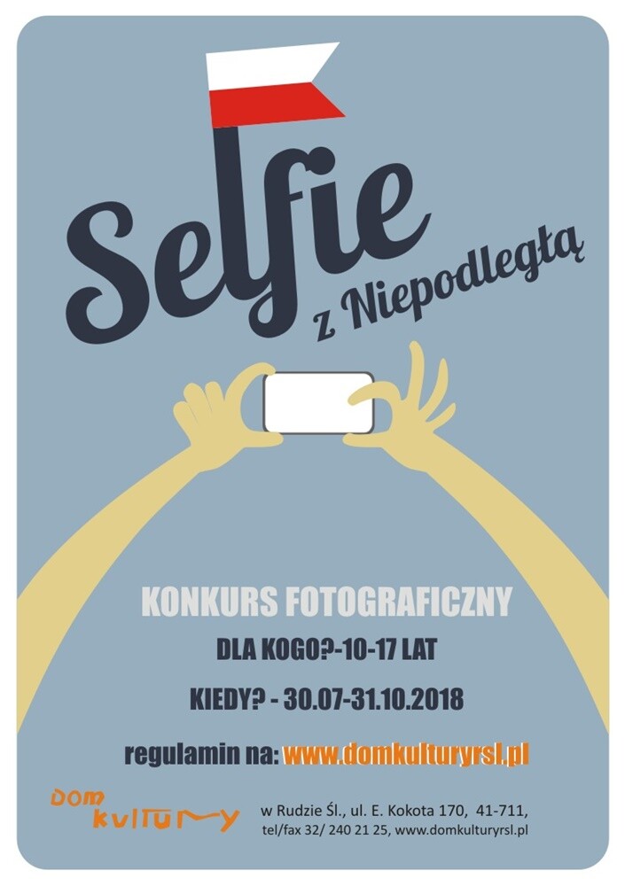 Dom Kultury w Bielszowicach zaprasza młodzież do wzięcia udziału w konkursie „Selfie z Niepodległą”.