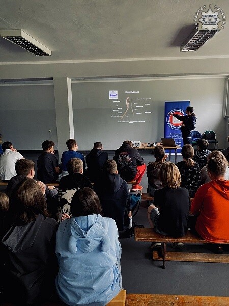 Wczoraj w Szkole Podstawowej nr 15 w Rudzie Śląskiej odbyło się spotkanie profilaktyczne w ramach kampanii społecznej „Wkraczasz w dorosłość – Wybieraj”. W wydarzeniu uczestniczyli uczniowie klas siódmych, którzy wysłuchali prelekcji przedstawicieli Policji oraz Powiatowej Stacji Sanitarno-Epidemiologicznej w Rudzie Śląskiej.
