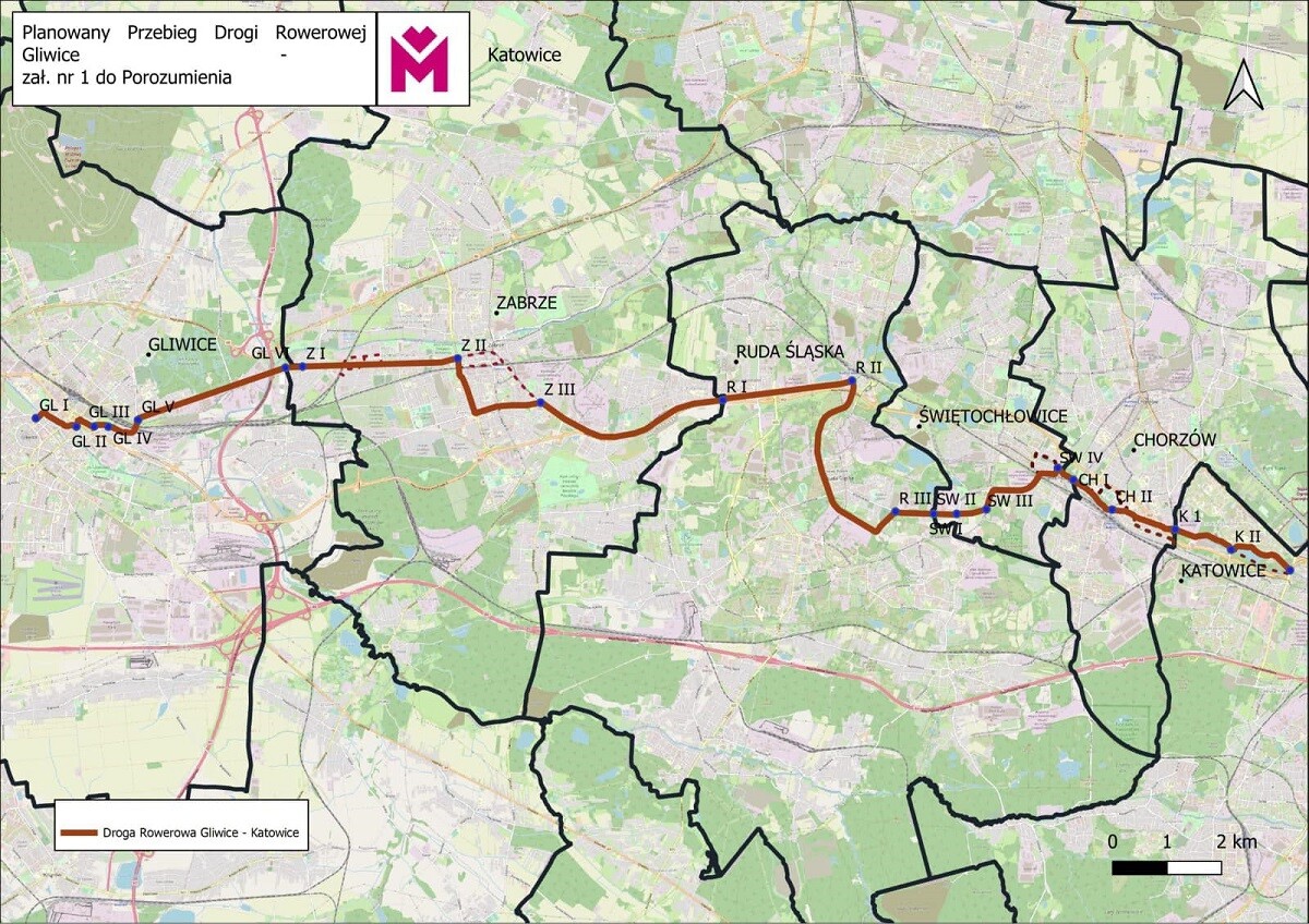 – Przebiegać będzie istniejącym ciągiem od granicy z Zabrzem w pasie drogowym ul. Zabrzańskiej do ul. Przedtorze. Następnie poprowadzony zostanie na południe śladem nieczynnej linii kolejowej do ulicy Chorzowskiej. Od skrzyżowania ulicy Lompy i Chorzowskiej droga przechodzi do granicy ze Świętochłowicami. W znacznej części rudzki odcinek poprowadzony zostanie między ogródkami działkowymi i terenami poprzemysłowymi – informuje Krzysztof Mejer, wiceprezydent Rudy Śląskiej.