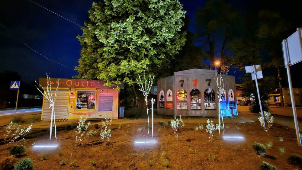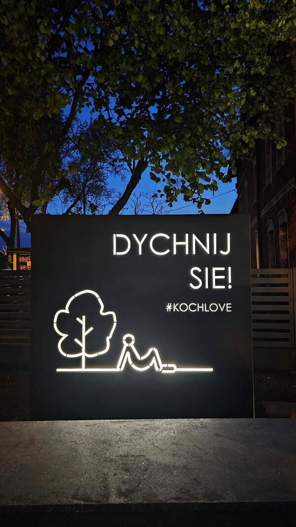Nad rynkiem zawisła girlanda z żarówkami, która nadaje temu miejscu magii. Całość dopełnia podświetlany pylon z napisem „Dychnij się! #Kochlove”.