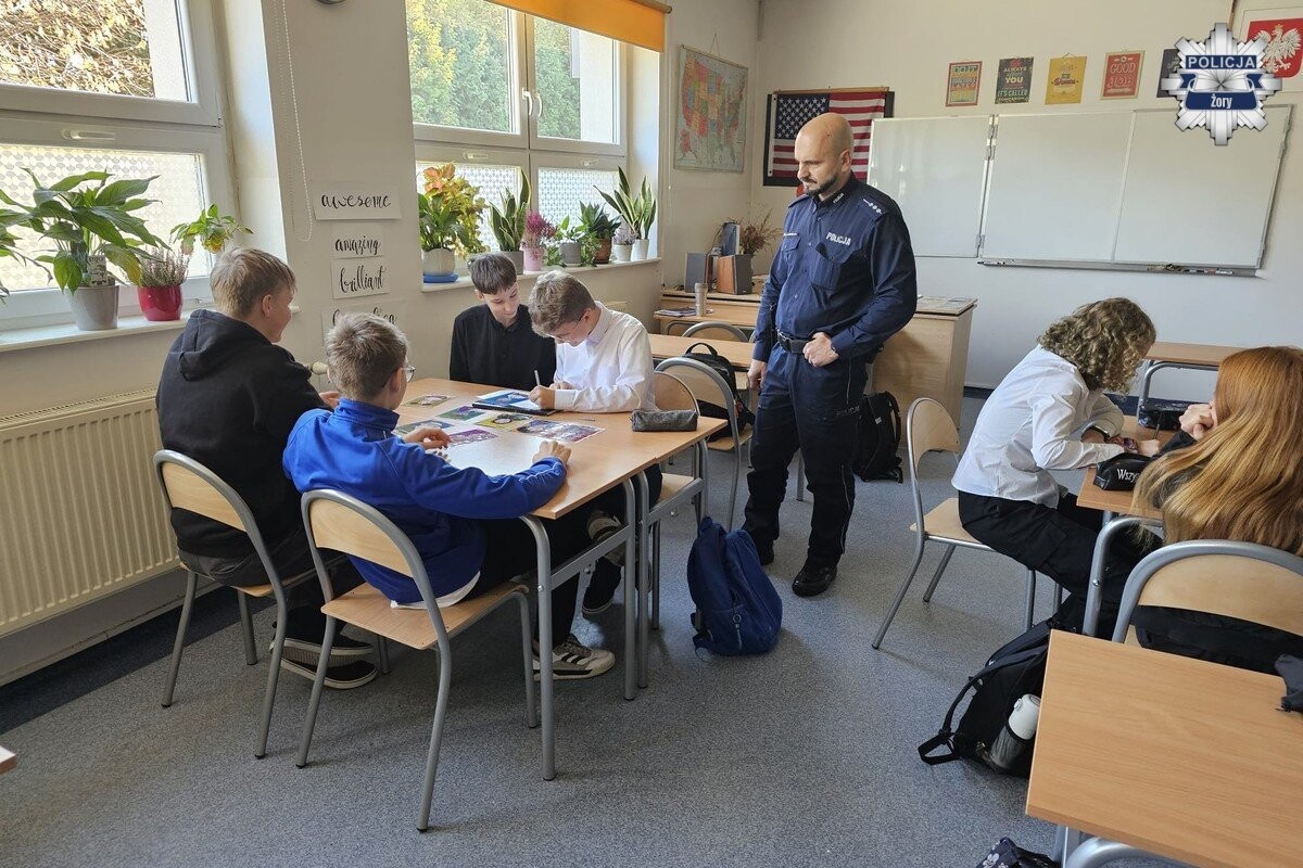 W Szkole Podstawowej nr 11 w Żorach odbyły się niecodzienne zajęcia z udziałem funkcjonariusza policji. W ramach profilaktyki i edukacji społecznej, uczniowie wzięli udział w dwóch tematycznych spotkaniach dostosowanych do ich wieku.