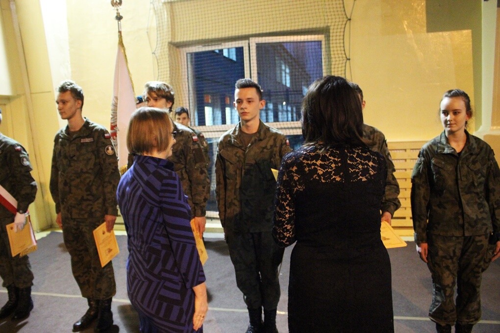 Uczniowie pierwszych klas mundurowych (wojskowej i policyjnej) złożyli uroczyste ślubowanie na sztandar szkoły, a wyróżniający się kadeci z klas drugich i trzecich otrzymali awanse na wyższe stopnie. Na otrzymanie wyższego stopnia awansu wpływa wiele składników. Brane pod uwagę są: zachowanie, średnia ocen oraz zajęcia poligonowe, a także czynny udział w życiu szkoły i miasta. Zdobyte stopnie są istotne w czasie kiedy absolwenci szkoły chcą podjąć służbę w Policji czy w jednostkach wojskowych.