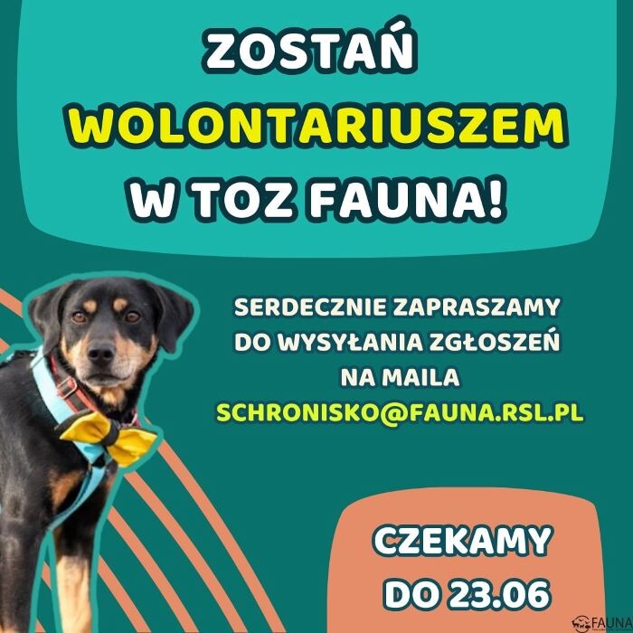 Tegoroczna rekrutacja wolontariuszy w „Faunie” przebiega nieco inaczej niż w poprzednich latach, gdyż odbywa się drogą mailową. Osoby chętne powinny umieścić w wiadomości kilka słów o sobie, o swoim doświadczeniu w pracy z psami, a także o tym, co zmotywowało je do zgłoszenia się na wolontariat. Wiadomości należy przesyłać na adres mailowy schronisko@fauna.rsl.pl.