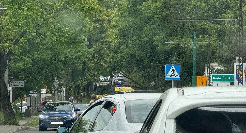 W środę, 28 maja 2025 roku, około godziny 15:00, strażacy z Komendy Miejskiej Państwowej Straży Pożarnej w Rudzie Śląskiej zostali wezwani do zdarzenia przy ul. Katowickiej. W wyniku silnych podmuchów wiatru doszło do przewrócenia się gałęzi drzewa na torowisko tramwajowe.