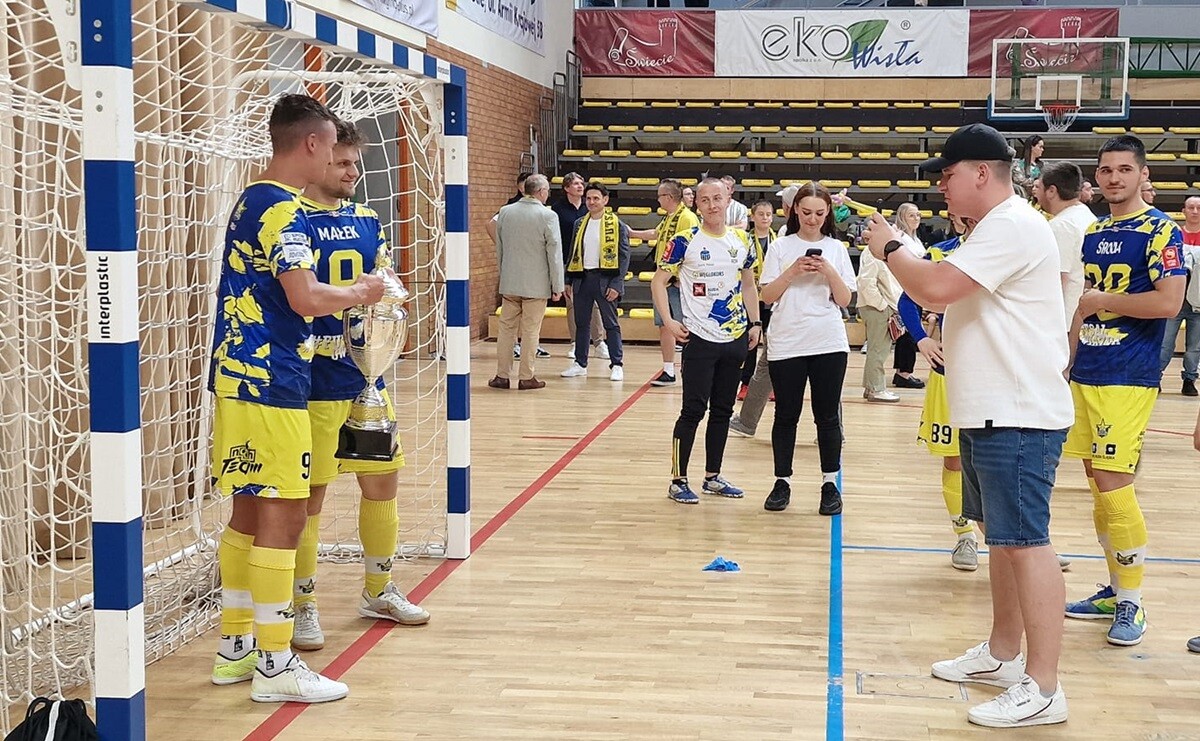 - Na pewno dla całego środowiska sportowego po porażce w Halembie 3-5 nasz awans był niespodzianką. Niemniej na pewno chłopcy i klub oraz kibice w Rudzie Śląskiej zasłużyli na Futsal Ekstraklasę. W Świeciu byliśmy zespołem lepszym i zasłużenie wygraliśmy. Gratuluję chłopakom i trenerowi Wiktorowi, który zapisał się w historii futsalu jako najmłodszy trener, który awansował do najwyższej klasy rozgrywkowej. Zespół świętuje a władze klubu już myślą o przygotowaniach do nowego sezonu, bo będzie to duże wyzwanie organizacyjno - finansowe. Dziękujemy kibicom i sponsorom oraz patronom medialnym za mijający sezon i liczymy na dalsze wsparcie - mówił Arkadiusz Grzywaczewski Honorowy Prezes SRS Gwiazda Ruda Śląska.