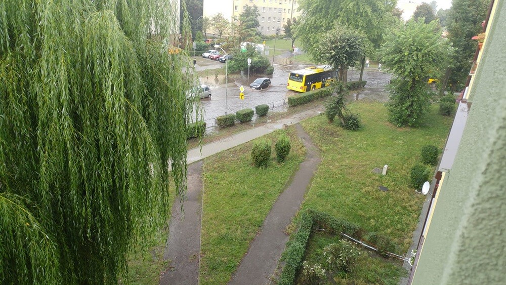 Mieszkańcy informują o utrudnieniach na drodze spowodowanych burzą z deszczem, która przeszła dziś rano nad miastem. Choć była krótka, pozostawiła po sobie wiele strat.