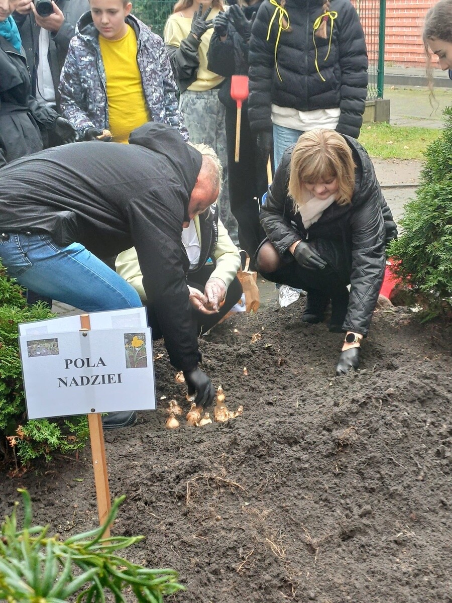 Podczas wydarzenia uczestnicy mieli również okazję porozmawiać o działalności Hospicjum Domowego im. św. Jana Pawła II, które od lat niesie pomoc chorym w Rudzie Śląskiej. Wspólnie z wolontariuszami, pracownikami szkoły i przedstawicielami hospicjum udało się zasadzić kolejne żonkile, które będą rosły jako symbol pamięci, wsparcia i wspólnoty.