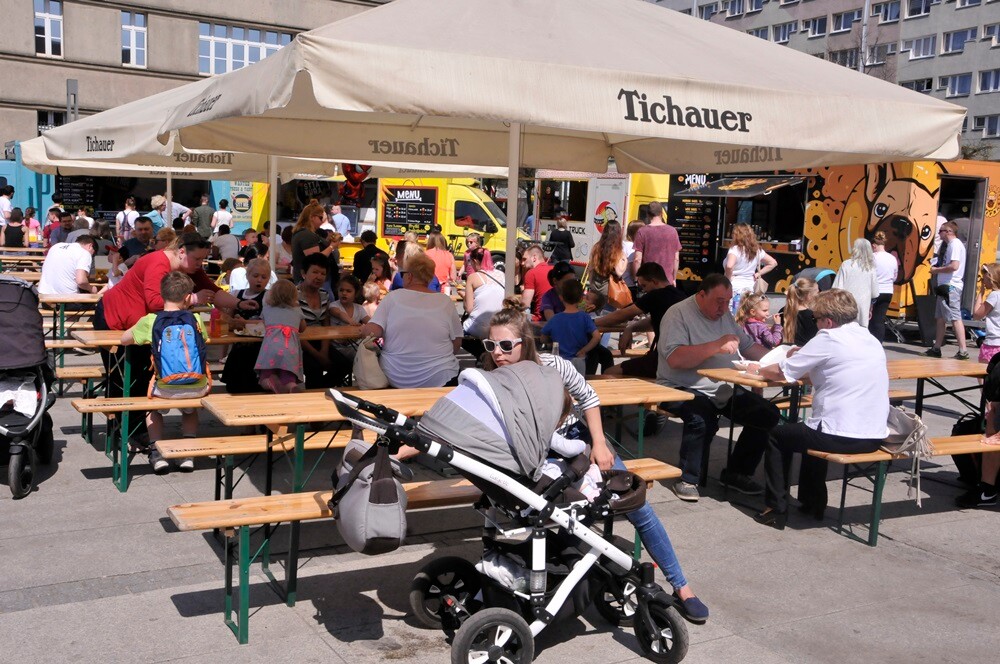Inwazja Foodtrucków odbyła się w Rudzie Śląskiej już po raz czwarty. Na rynku można było spróbować m.in. burgerów czy frytek belgijskich, pojawiła się także kuchnia orientalna. Nie zabrakło również kultowych belgijskich frytek oraz czegoś słodkiego, np owoców w czekoladzie i gofrów.