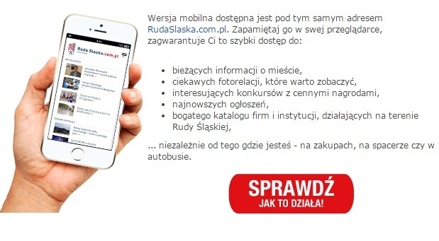 W lipcu 2014 roku uruchomiliśmy mobilną wersję portalu www.RudaSlaska.com.pl. Wiadomość ta ucieszyła wielu naszych czytelników mogących teraz w wygodny i szybki sposób przeglądać treści zawarte na portalu, będąc w podróży, na zakupach czy w poczekalni.