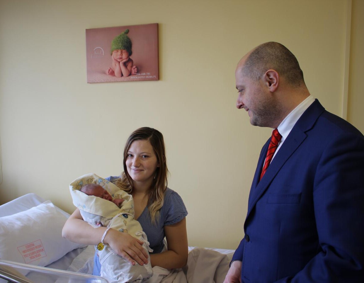 Noworodka i jego mamę odwiedził dzisiaj w szpitalu wiceprezydent Michał Pierończyk. Maluszek otrzymał prezenty i rudzkie gadżety.
