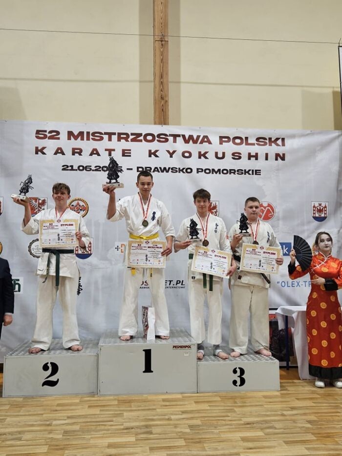 Zawodnicy rudzkich klubów sportowych przyzwyczaili nas już do sukcesów! 21 czerwca w Drawsku Pomorskim odbyły się Wagowe Mistrzostwa Polski w Karate Kyokushin. Do rywalizacji stanęli przedstawiciele Rudzkiego Klubu Kyokushin Karate, którym w sumie udało się wywalczyć 7 medali – 3 złote, 3 srebrne i brąz! Dwóch zawodników wywalczyło tytuły Mistrza Polski. Sukcesy zawodników pozwoliły Rudzkiemu Klubowi Kyokushin Karate zająć 3. miejsce w klasyfikacji drużynowej na 70 startujących klubów.