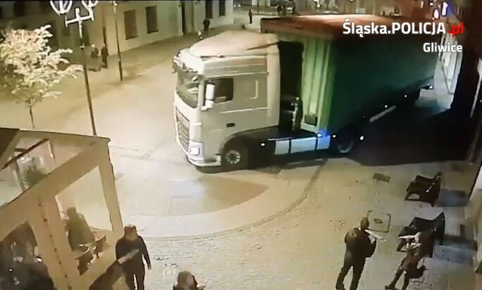 W piątkowy wieczór (19.10), o godz. 19.40, osoby spacerujące po gliwickim rynku spostrzegły wjeżdżający od strony ul. Zwycięstwa samochód ciężarowy z naczepą. Kierowca zrobił rundę wokół ratusza i wjechał w ul. Matejki. Po drodze, podczas manewrów, uszkodził latarnię i zarysował obudowę studni. Trwają ustalenia, czy powstały jeszcze jakieś inne szkody.