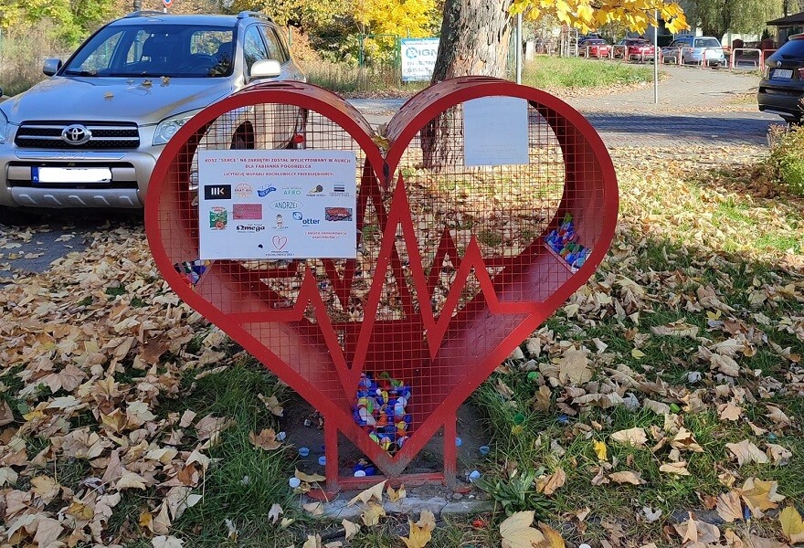 Kochłowicki kosz, w którym zbierane są nakrętki został wylicytowany i zakupiony dzięki zaangażowaniu lokalnych przedsiębiorców. Dziś obiekt w kształcie serca stanowi charakterystyczny element krajobrazu dzielnicy.