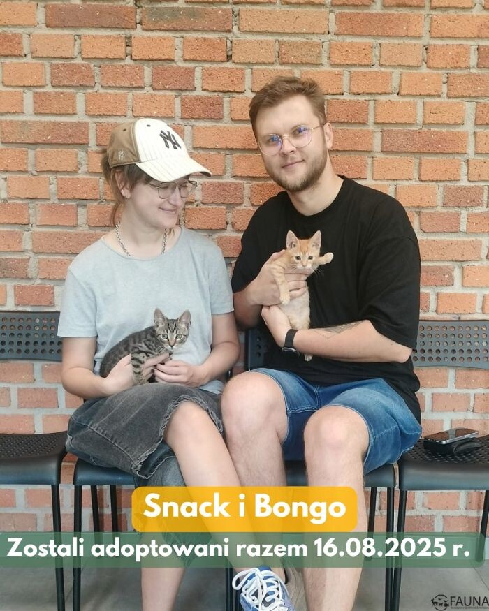TOZ Fauna podzieliło się podsumowaniem minionego tygodnia pod kątem adopcji. Od 11 do 17 sierpnia do nowych domów pojechało 5 podopiecznych: psy Rama i Gucio (teraz Hiro) oraz koty: Bibik, Snack i Bongo. Małe kociaki Snack i Bongo trafiły do jednego domu.