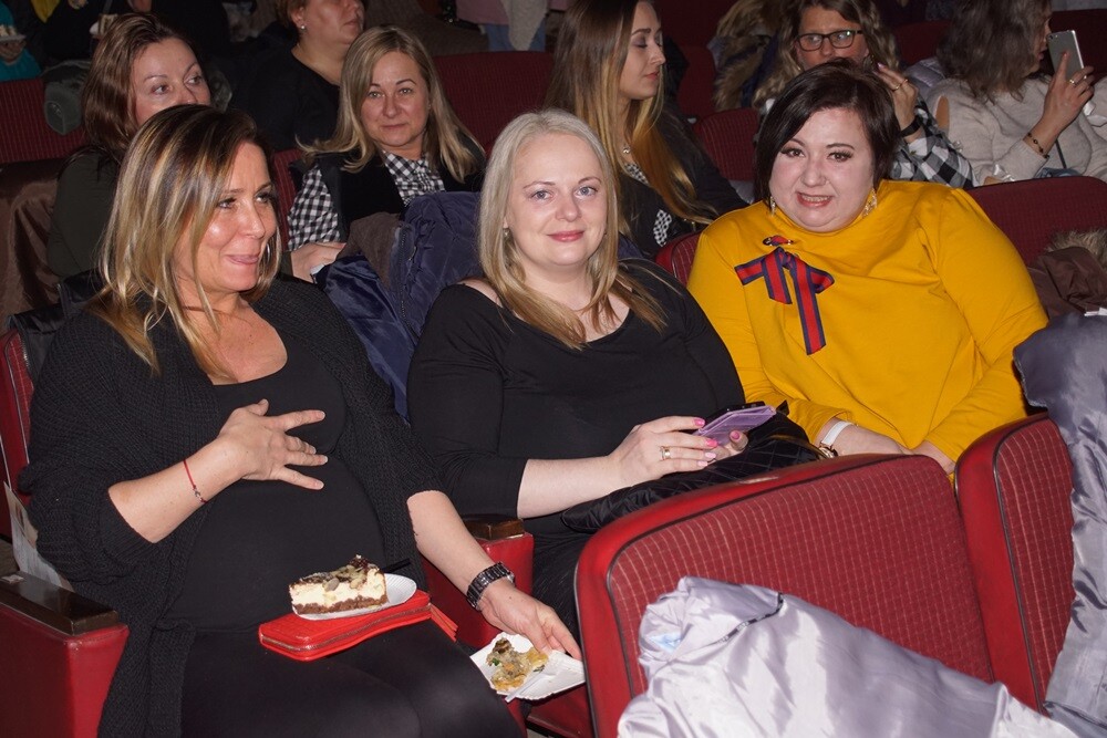 O godzinie 19.30 w kinie została wyświetlona polska komedia romantyczna "Narzeczony na niby". Przed seansem na panie czekało jak zwykle mnóstwo atrakcji m.in zabiegi kosmetyczne czy porady zdrowotne, a Aleksandra Michalik i Anna Stężały-Pocztańska z 2aFit porwały całą salę kinową do wspólnych ćwiczeń.