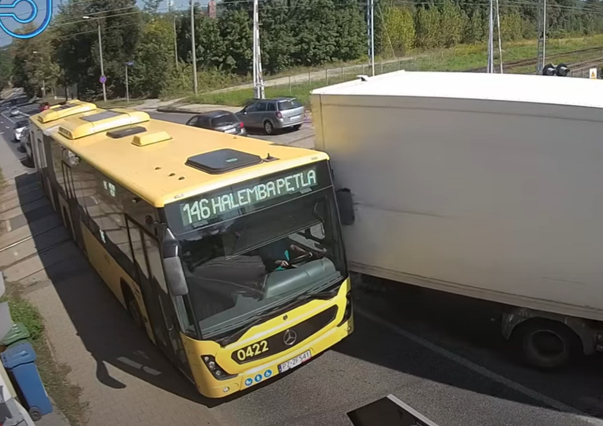 W środę, 29 sierpnia 2024 roku, około godziny 11:30, na skrzyżowaniu przy przejeździe kolejowym w dzielnicy Wirek doszło do incydentu drogowego. Samochód ciężarowy marki Mercedes, zaraz po przekroczeniu torów, skręcał w lewo. Podczas tego manewru tylny narożnik naczepy wszedł w kontakt z lusterkiem autobusu linii 146 powodując jego uszkodzenie.