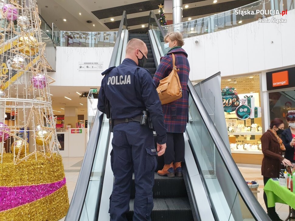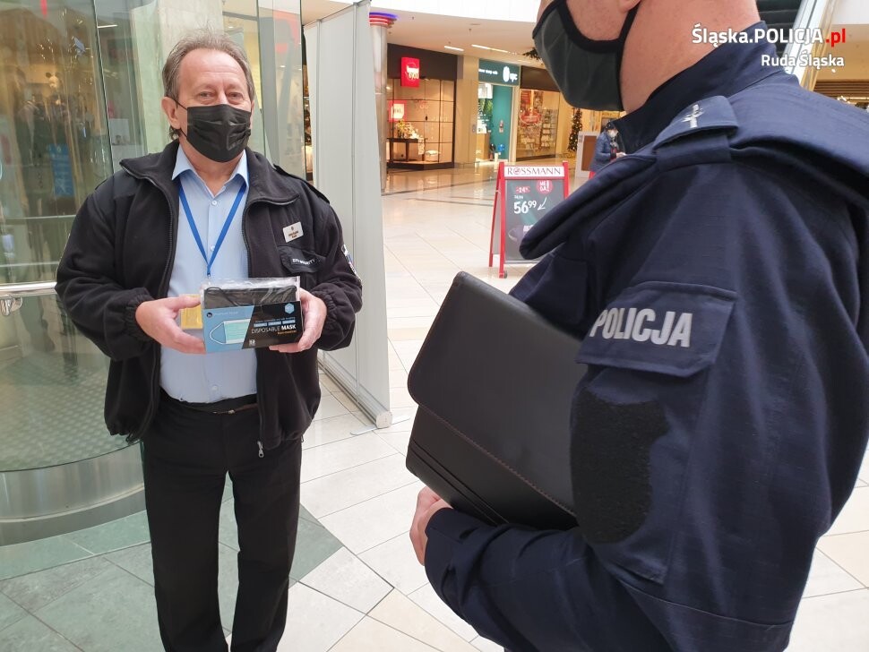 W trosce o bezpieczeństwo mieszkańców Rudy Śląskiej policjant wraz z przedstawicielką rudzkiej Powiatowej Stacji Sanitarno – Epidemiologicznej sprawdzali, czy na terenie sklepów wielkopowierzchniowych respektowane są obowiązujące zasady bezpieczeństwa. Sprawdzali oni czy klienci zasłaniają usta i nos, a także czy zachowują dystans społeczny. Przedstawicielka SANEPiD-u zwracała także uwagę na stosowanie zasad bezpieczeństwa i higieny przez pracowników sklepów. Cieszy fakt, że kierownictwo centrum handlowego również podejmuje działania, które mają na celu ograniczenie rozprzestrzeniania się koronawirusa. Pracownicy ochrony wyposażeni są w maseczki ochronne, które rozdają zapominalskim klientom, aby na terenie sklepów nie było nikogo bez zasłoniętych ust i nosa . Podczas działań nie odnotowano żadnego przypadku nieprzestrzegania przepisów. Stosowanie w tych właśnie miejscach obostrzeń związanych z dystansem społecznym, zakrywaniem ust i nosa oraz dezynfekcją rąk, wpływa na nasze zdrowie.