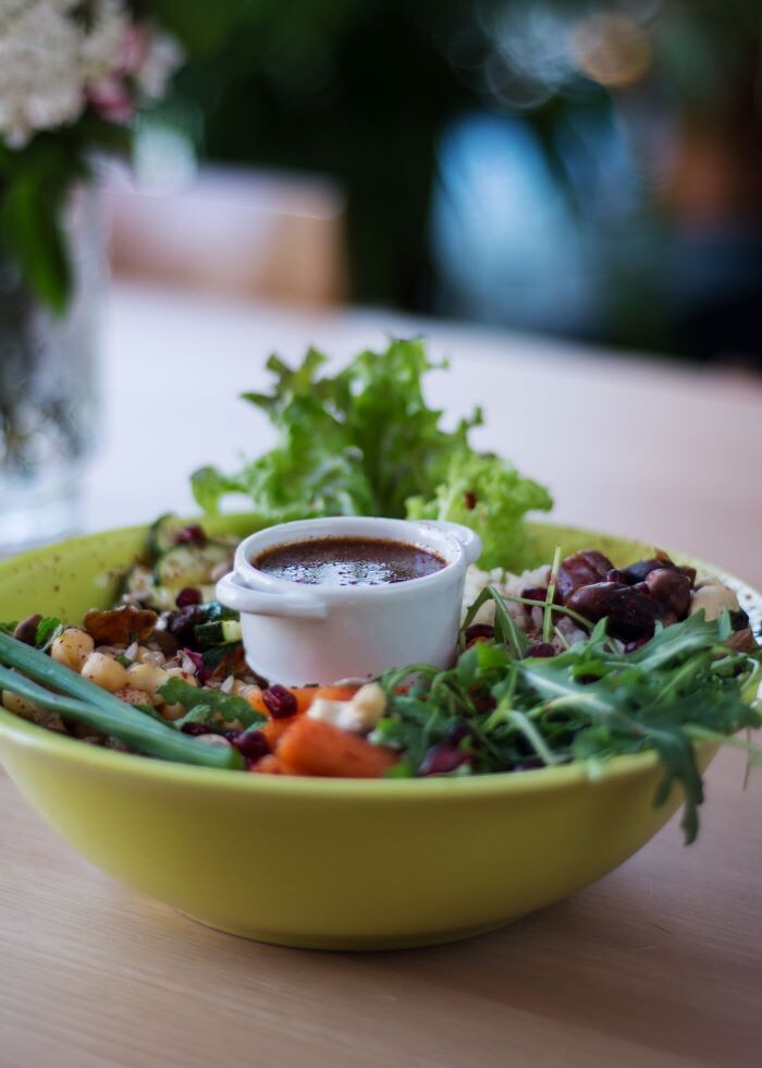 B: W naszej kuchni zależy nam na tym, aby karmić innych tak, jak sami chcielibyśmy być karmieni. Ze względu na to, że lubimy z mężem jeść dobrze i zdrowo, właśnie taka jest serwowana przez nas kuchnia. Mąż dba o to, aby dania były ładne, smaczne, świeże i odżywcze. Zależy nam na tym, aby nasi klienci czuli się po naszych daniach dobrze - mieli więcej energii i witalności. Taki efekt dają tłoczone oliwy, kiełki, świeże zioła, swojskie octy i kiszonki - to coś, co jest u nas na porządku dziennym. Nie ma u nas coca-coli czy sprite’a - sami robimy swojskie lemoniady i napoje. Mamy wyselekcjonowanych dostawców, dzięki czemu nasze dania są zawsze wysokiej jakości.