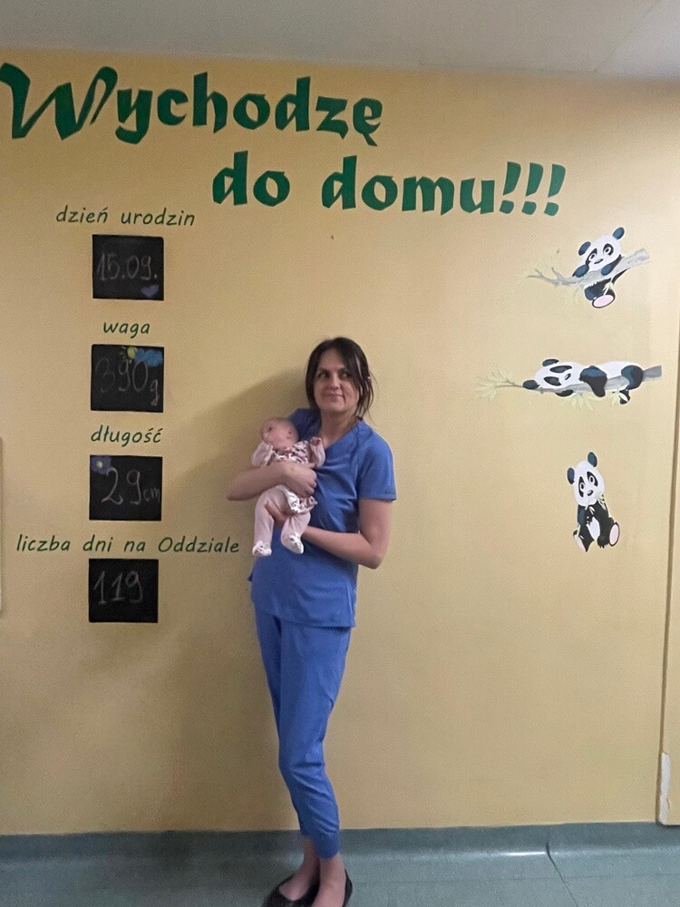 Pod opieką lekarza prowadzącego dr Marty Twardoch-Drozd spędziła 4 miesiące w szpitalu, a dzisiaj wychodzi do domu, będąc 2,5-kilogramowym niemowlakiem.