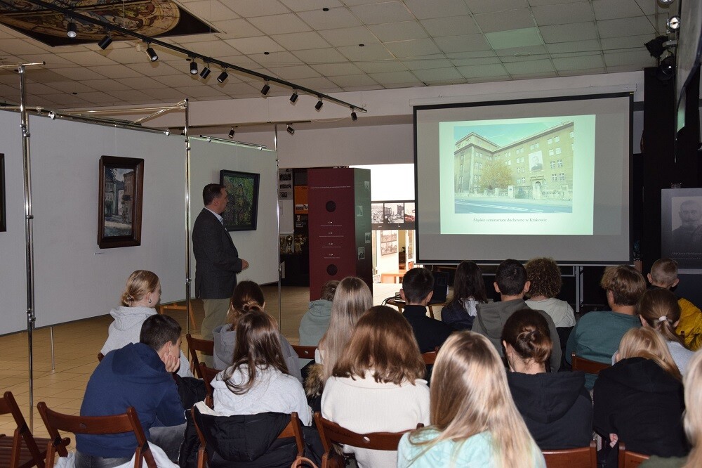 Na zakończenie uczniowie zostali oprowadzeni po stałej ekspozycji muzeum, dzięki której mogli zobaczyć pamiątki związane z historią regionu i postacią kardynała Hlonda.