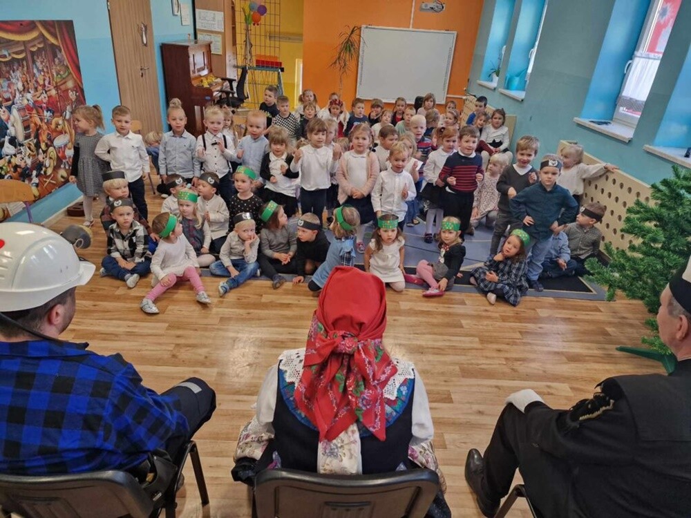 Wkraczając w grudzień, nie mogło zabraknąć śląskich tradycji barbórkowych. Z tej okazji, 4 grudnia przedszkole odwiedzili Krystyna i Zbigniew Lisowie oraz Damian Wyciślik. Dzieci miały możliwość zapoznać się z uniformem i ekwipunkiem górnika pracującego "na dole" oraz podziwiać przepięknie zdobione i pełne symboliki: galowy mundur i suknię górniczej żony.