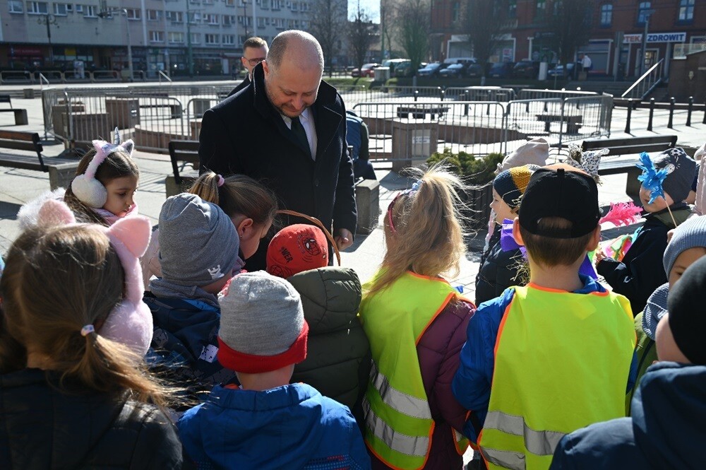 - Wiosna już przyszła! Pierwsze oznaki już są, słońce świeci, temperatura poszybowała w górę i tradycyjnie na pl. Jana Pawła II w Nowym Bytomiu pojawiły się przedszkolaki. Jak co roku wspólnie powitaliśmy wiosnę. Dziękuję za zaproszenie! - napisał prezydent Rudy Śląskiej - Michał Pierończyk.