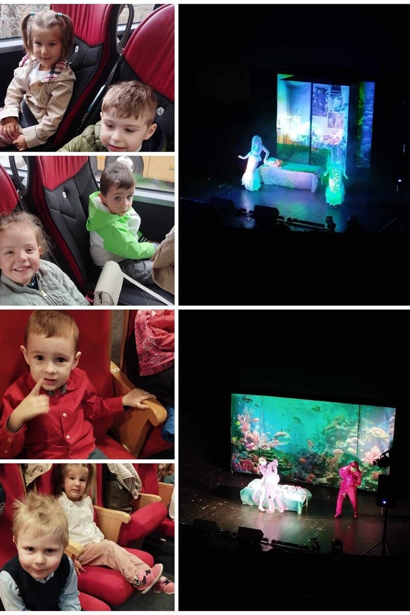 Przedszkolaki z wszystkich grup odwiedziły Chorzowskie Centrum Kultury, gdzie zobaczyły spektakl muzyczny „Niezwykłe życie podwodnych zwierząt”. W zabawny i bajkowy sposób zapoznały się z wpływem ludzi na świat stworzeń morskich i dowiedziały się jak mogą pomagać żywym istotom.