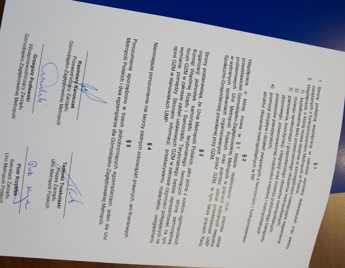 Na mocy porozumienia, które podpisano 10 września, GZM będzie współpracować z UMP w zakresie wymiany doświadczeń i wiedzy związanych z funkcjonowaniem obszarów metropolitalnych w Polsce. Podczas uroczystości podkreślano, jak ważna jest to współpraca dla każdej ze stron.