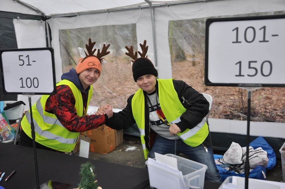 Zawody trwały cały weekend, pogoda szczególnie w sobotę nie zachęcała do wyjścia z domu, ale to nie zrażało młodych ludzi, którzy w ramach wolontariatu pomagali organizatorom w przeprowadzeniu tego największego na Śląsku, biegu Mikołajów. W sobotę na starcie pojawiło się ponad 500 dzieci, a do obowiązków świętochłowickich wolontariuszy należało zabezpieczenie trasy biegu i obsługa mety. Pracowali także w biurze zawodów.