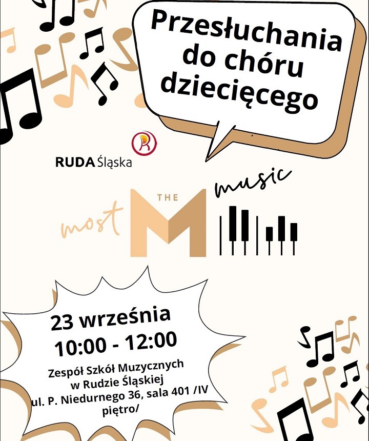 W najbliższą sobotę, 23 września, odbędą się przesłuchania uczniów szkół podstawowych do udziału w projekcie „Most the Music”, który zakłada powstanie chóru dziecięcego. Przez najbliższe miesiące młodzi artyści będą mieli możliwość rozwijania talentów wokalnych pod kierunkiem doświadczonych edukatorów. Efekty ich pracy zostaną zaprezentowane na wielkiej scenie pod batutą Maestro Adama Sztaby podczas finału programu, który odbędzie się w okolicach przyszłych wakacji. Sponsorem i pomysłodawcą programu jest Fundacja Most the Most, a realizatorem Miasto Ruda Śląska.