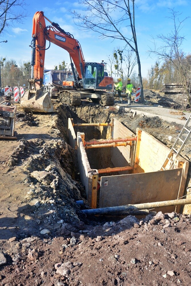 Budowa pierwszego odcinka trasy N-S w kierunku północnym od DTŚ do ul. Magazynowej trwa od kilku miesięcy. Dzięki przyjaznej aurze prace postępuje z tygodnia na tydzień. Obecnie wykonywane są roboty związane z budową przejazdu gospodarczego pod trasą N-S do kompleksu garaży w rejonie ul. Wawelskiej. Ponadto przebudowywane są sieci uzbrojenia podziemnego w pasie drogowym ul. Magazynowej oraz budowanej trasie N-S. Wykonywane są też badania terenu oraz prowadzone są roboty związane z budową zbiorników retencyjnych.