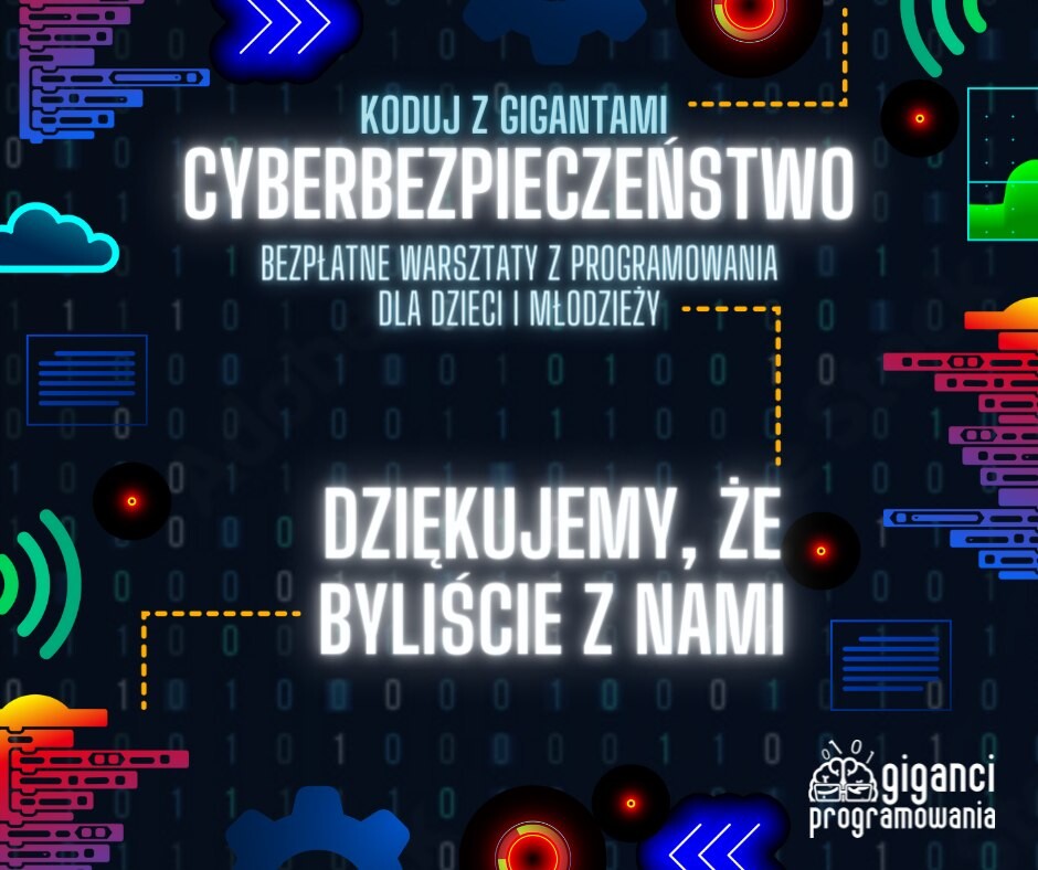 Wiedzę na temat cyberbezpieczeństwa mogli zdobyć także rodzice uczestników, którzy otrzymali treściwy e-book “Jak nie dać się Cyber zbójom” przygotowany wspólnie z firmą Sekurak oraz czasopismem Programista Junior, a także mogli wziąć udział w bezpłatnym webinarze poświęconym bezpieczeństwu w sieci, które prowadził trener Gigantów Programowania.