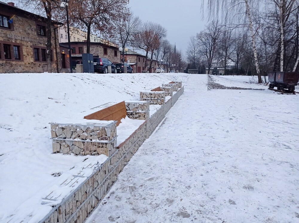 Zakres prac obejmował zagospodarowanie skarpy, montaż schodów i ławek, wyrównanie i utwardzenie terenu oraz montaż urządzenia zabawowego. Całość dopełniła ekspozycja wagoników kopalnianych, które stanowią symbol historii tego miejsca.