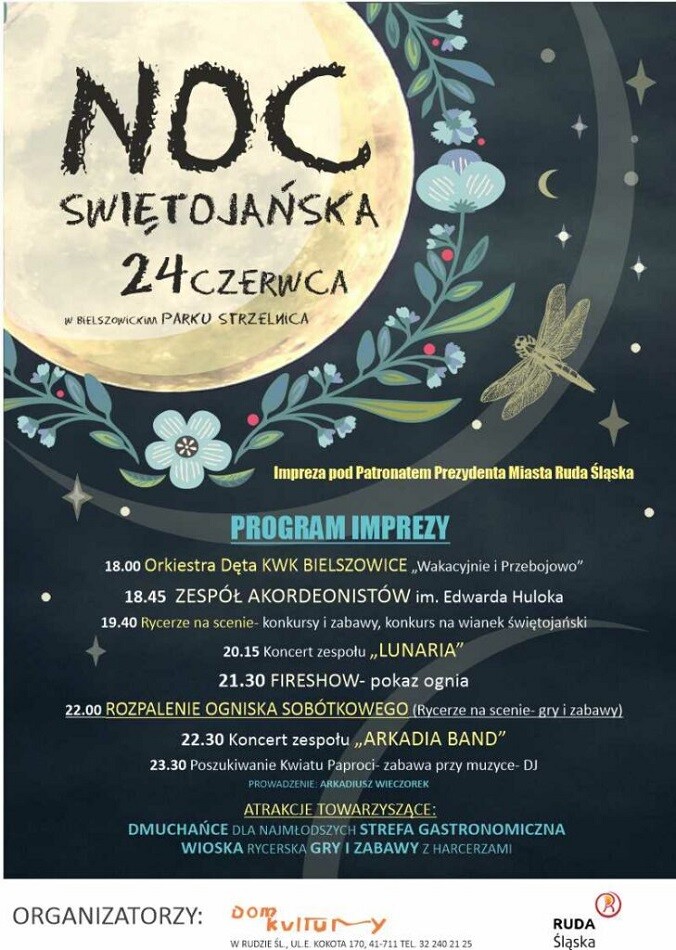 Organizatorzy zapraszają wszystkich mieszkańców Rudy Śląskiej oraz okolic na niezwykłe przeżycia, doskonałą zabawę i magiczną atmosferę Nocy Świętojańskiej w parku strzelnica. To będzie wieczór, którego nie można przegapić!