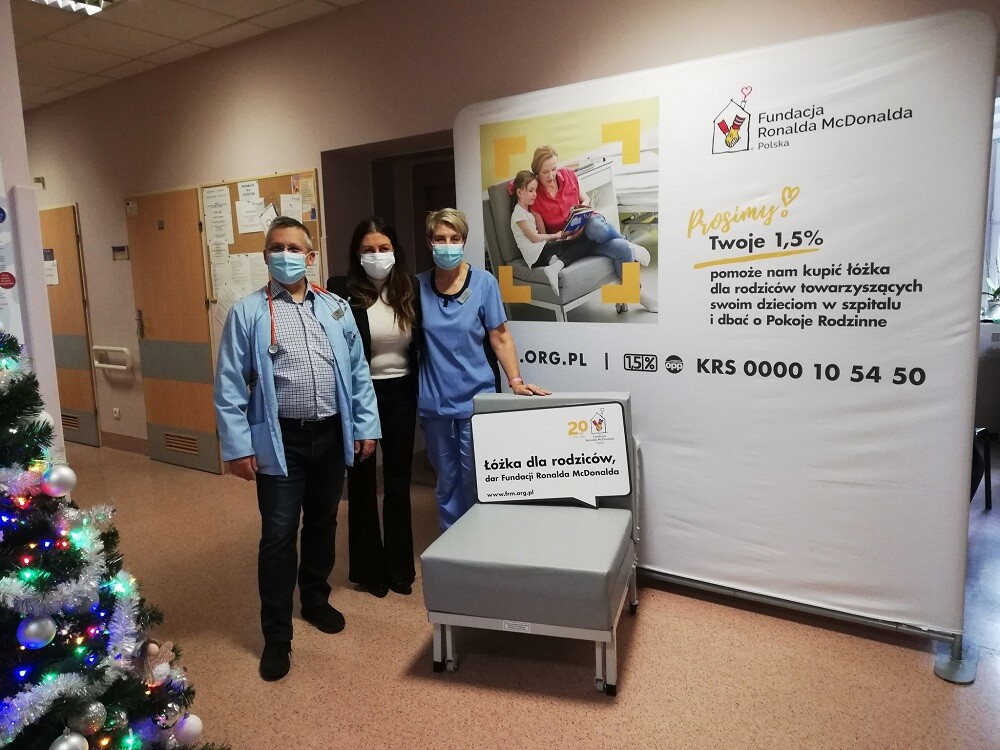– Fundacja Ronalda McDonalda zmienia rzeczywistość publicznych szpitali dziecięcych dzięki coraz większemu zaangażowaniu donatorów, przyjaciół Fundacji. Wiemy, że zmiana warunków pobytu rodzica z dzieckiem w szpitalu jest możliwa, zaczyna się od łóżka i nie można jej odkładać na przyszłość, jeśli nie chce się nagle być zaskoczonym wyborem: karimata lub krzesło. W tym roku przekazujemy łóżka dla rodziców sfinansowane z 1% podatku. To bardzo konkretny przykład, jak publicznym szpitalom może pomóc każdy z nas – mówi Katarzyna Rodziewicz, Prezes Zarządu i Dyrektor Wykonawcza Fundacji Ronalda McDonalda.