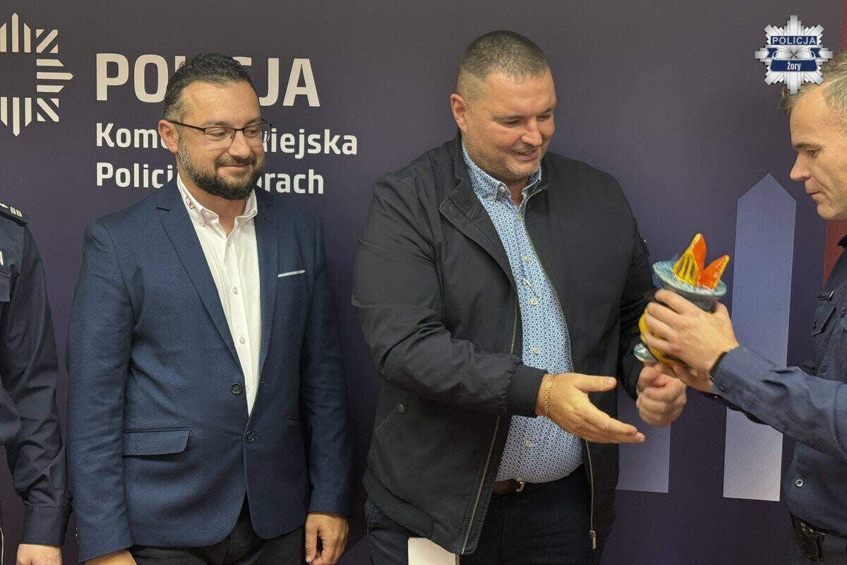 Podczas spotkania Komendant Miejskiej Policji w Żorach, podinsp. Marek Ryszka, wyraził wdzięczność za przekazany sprzęt, wręczając Gracjanowi Lewickiemu – Dyrektorowi Proma Group – ceramiczną odsłonę żorka policjanta. To symboliczne podziękowanie za wsparcie i zaangażowanie firmy na rzecz żorskiej policji oraz bezpieczeństwa całej społeczności.