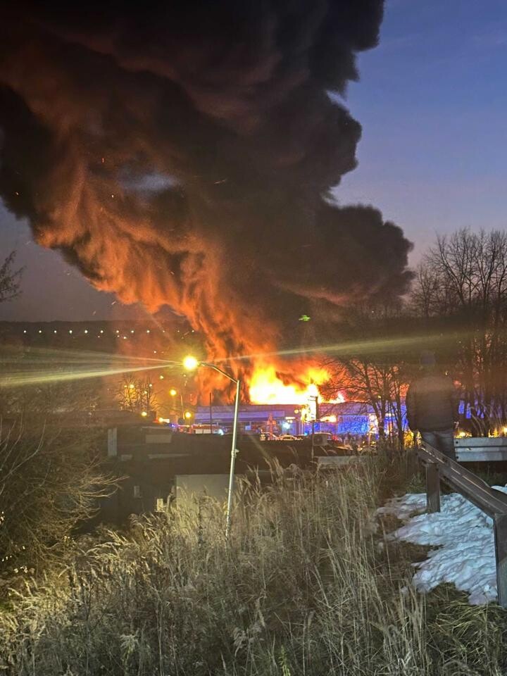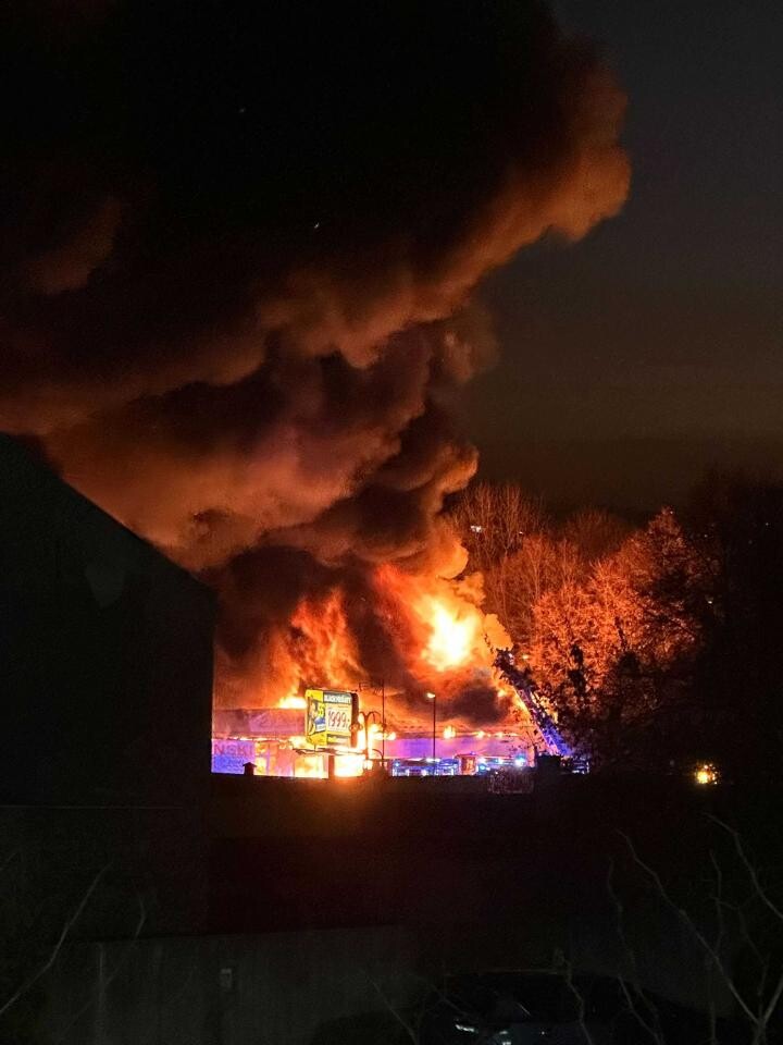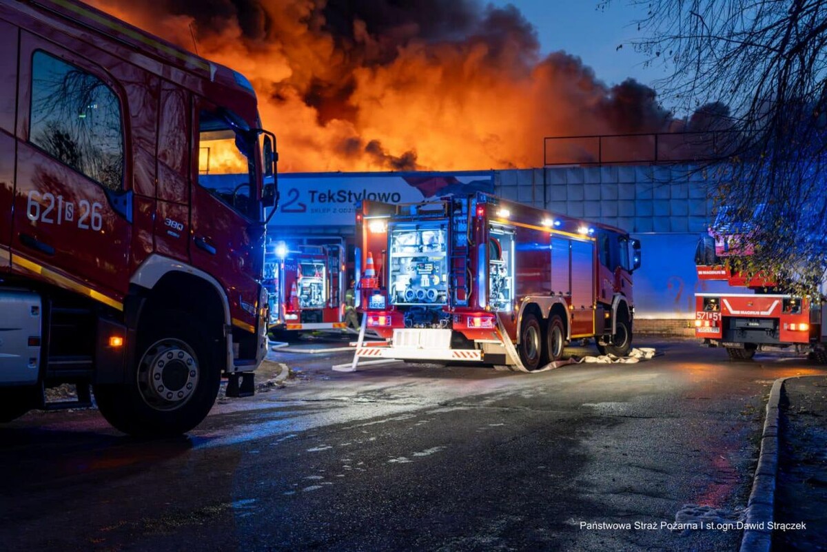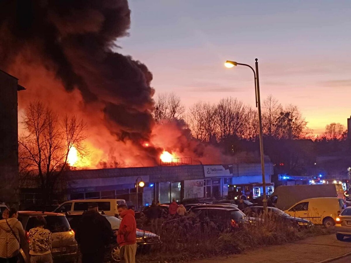 Budynek, w którym znajdują się takie sklepy jak Chiński Market, Biga czy Tekstylowo, stanął dziś w płomieniach, generując ogromne kłęby dymu widoczne są z odległych części miasta.