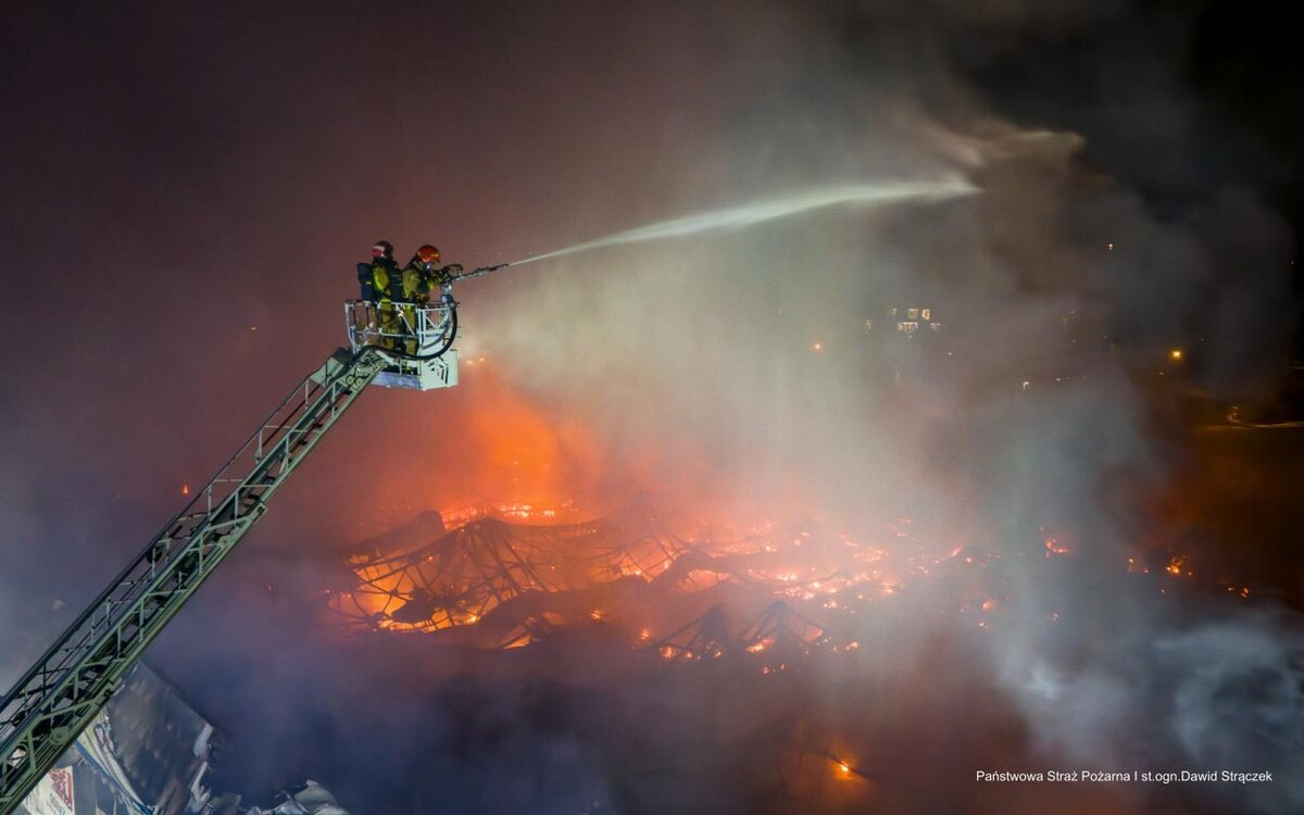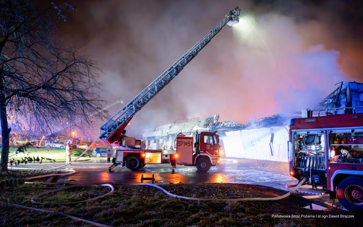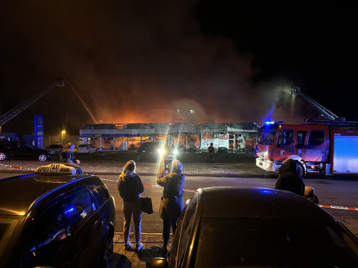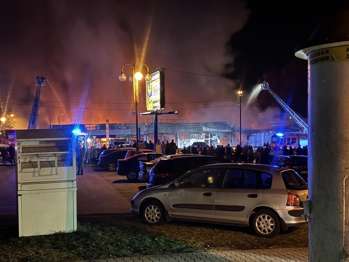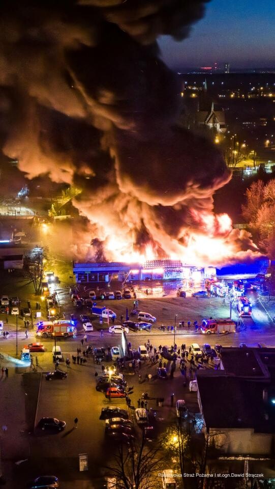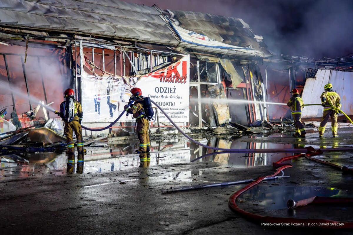AKTUALIZACJA (21:30): Aktualnie trwa akcja związana z dogaszaniem pożaru oraz przeszukiwaniem pogorzeliska i może ona potrwać jeszcze wiele godzin. Władze miasta apelują, aby nie podchodzić do budynku i o bezwzględne dostosowanie się do poleceń służb. Na miejsce zadysponowano pracownika Powiatowego Inspektoratu Nadzoru Budowlanego w Rudzie Śląskiej w celu oceny stanu konstrukcji pawilonu handlowego.