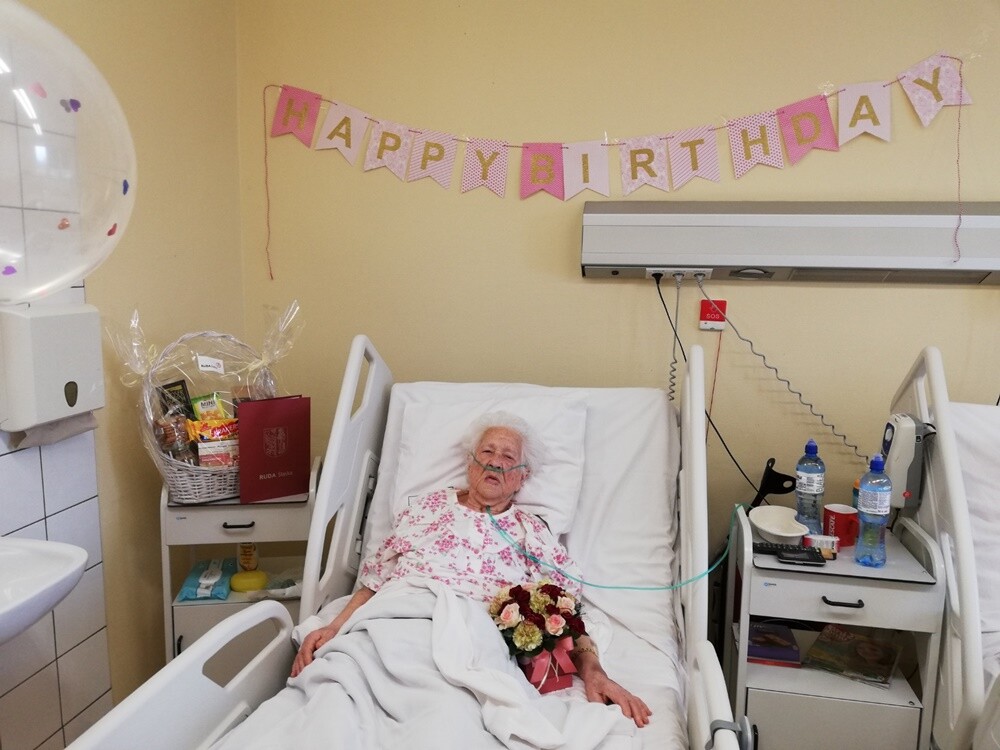 - Takie dni jak ten nie zdarzają się u nas często! Dziś mieliśmy niesamowity zaszczyt świętować razem z naszą pacjentką jej setne urodziny! Pani Krystyna otrzymała drobne podarunki od Zarządu naszego Szpitala, a także od Michała Pierończyka - Prezydenta Miasta Ruda Śląska, który osobiście przyszedł złożyć solenizantce życzenia. Nasz Personel zadbał o urodzinową atmosferę, przyozdabiając salę balonami. Cieszymy się, że mogliśmy towarzyszyć pani Krystynie w tym wyjątkowym dniu - czytamy na stronie rudzkiego szpitala.