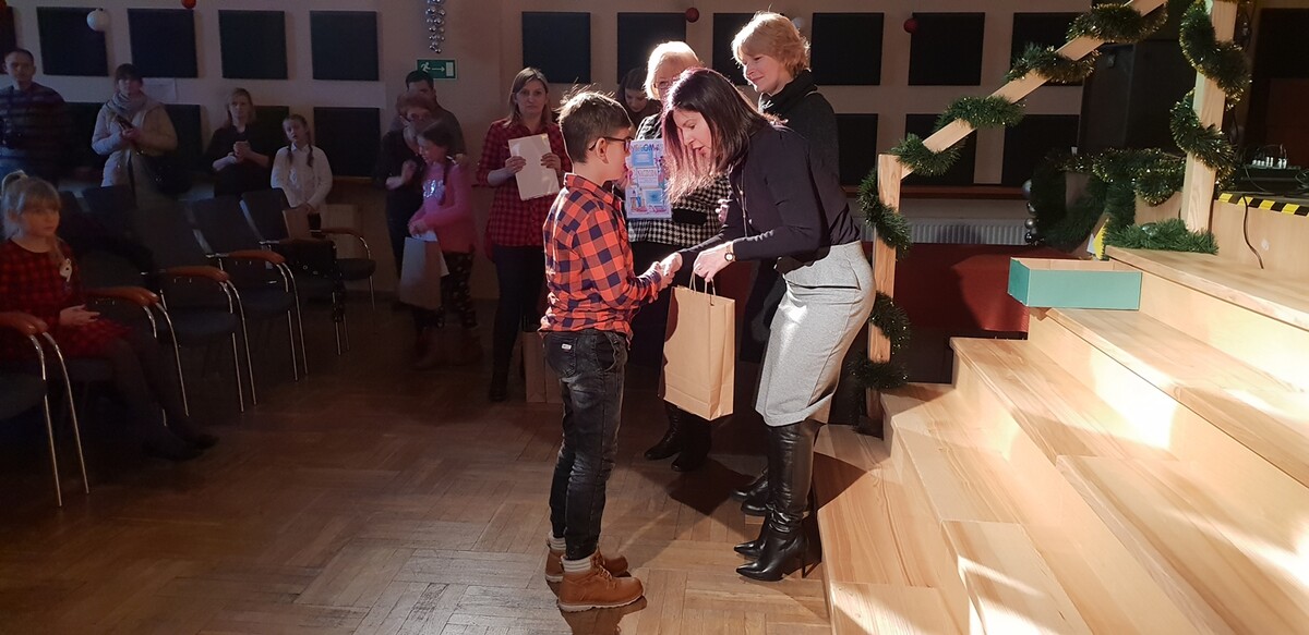 Nagrody, którymi były: dyplom, figurka i pluszak wręczyli: Krzysztof Gołąb, Irena Twardoch i Agnieszka Płaszczyk. Następnie odczytano zwycięzców kategorii muzycznej. Do konkursu zgłosiło się 18 placówek, były 43 zgłoszenia, blisko 120 wykonawców. Nagrodę otrzymała między innymi Alicja Górniok; Kinga Szymczyk, której muzykę do kolędy skomponował tata, a wyróżnienia: Kinga Molek i Aleksandra Morawiec oraz zespół wokalno-instrumentalny „Hakuna Matata”.