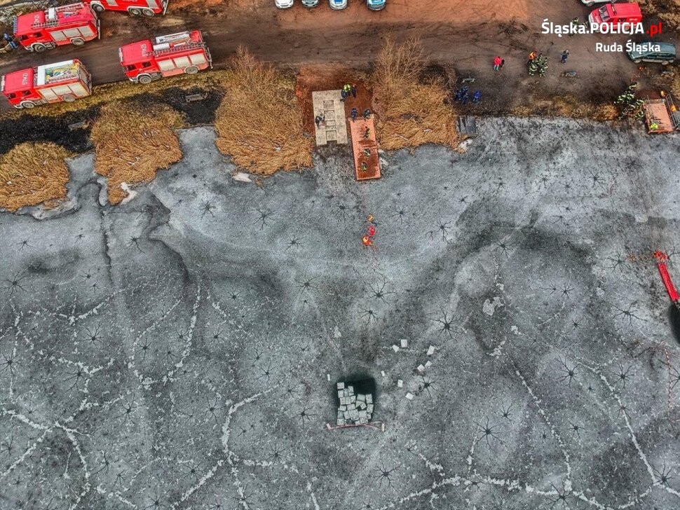 Pamiętajmy, że każde wejście na zamarznięty zbiornik wodny jest ryzykowne. Lód ulega ciągłym zmianom, również dobowym i nigdy nie ma tej samej grubości na całym zbiorniku. Poruszanie się po lodzie bez odpowiedniej wiedzy i sprzętu asekuracyjnego może zakończyć się tragicznie.