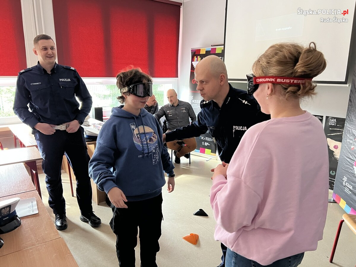 Chętni licealiści zostali zaproszeni do pokonania małego toru przeszkód w alko i narko goglach. Jak sami doświadczyli, było to dla niektórych nie lada wyzwanie. Mundurowi przedstawili uczniom kilka praktycznych wskazówek, dzięki którym młodzi ludzie w przyszłości mogą uniknąć utraty prawa jazdy oraz większych tragedii, związanych z wypadkami drogowymi.