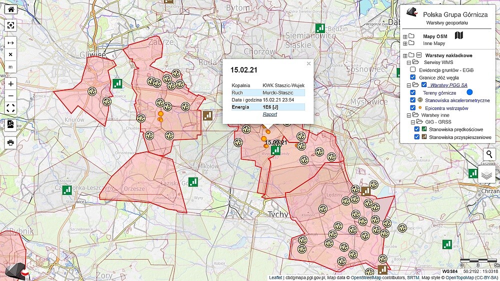 - W menu mapy po prawej stronie użytkownik może wybrać własne ustawienia i wyświetlić nie tylko granice obszarów górniczych kopalń, ale też np. granice złóż węgla, a nawet obrys działek z ewidencji gruntów, lokalizację i charakterystykę pomiarowych stanowisk akcelorometrycznych kopalń jak i stanowisk prędkościowych i przyspieszeniowych Górnośląskiej Regionalnej Sieci Sejsmologicznej Głównego Instytutu Górnictwa w Katowicach - czytamy na stronie PGG.