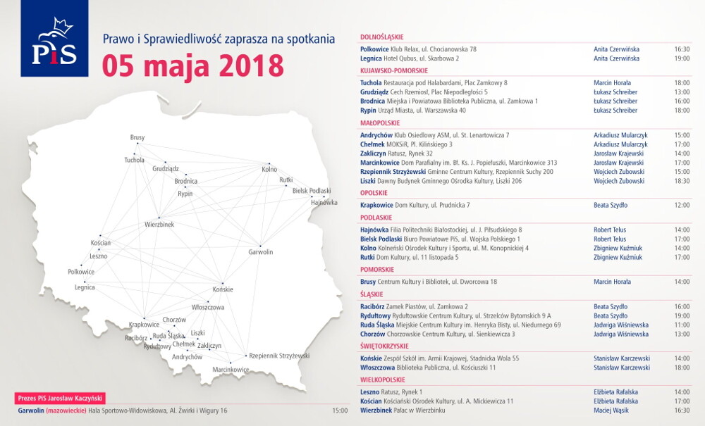 Zamysł organizacji cyklu rozmów z sympatykami PiS wypłynął podczas przeprowadzonej 14 kwietnia w Warszawie konwencji PiS wraz z partiami koalicjanymi. Od kilkunastu dni na terenie całego kraju odbyły się spotkania pod wspólnym hasłem #PolskaJestJedna Przed majówką politycy PiS zapowiedzieli, że w najbliższy weekend posłowie partii rządzącej pojawią się na Śląsku.