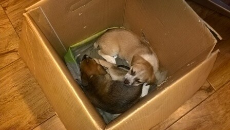 Niecodzienna przesyłka trafiła do siedziby Straży Miejskiej w Rudzie Śląskiej w dniu 28.12.2017 r. Mieszkanka naszego miasta wracając wraz z mężem z wyjazdu znalazła na parkingu w okolicach miasta Koziegłowy karton, a w nim porzucone dwa małe szczeniaki.